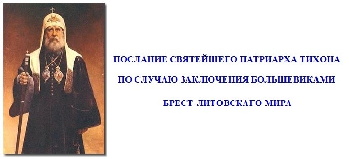 Патриарх Тихон выпустил послание с осуждением Брестского договора: «Заключенный ими миръ, по которому отторгаются отъ насъ цѣлыя области, населенныя православнымъ народомъ, и отдаются на волю чужого по вѣрѣ врага, а десятки миллионовъ православныхъ людей попадаютъ въ условія великаго духовнаго соблазна для ихъ вѣры; миръ, по которому даже искони православная Украина отдѣляется отъ братской Россіи и стольный городъ Кіевъ, мать городовъ, колыбель нашего крещенія, хранилище святынь, перестаетъ быть городомъ державы Россійской; миръ, отдающій нашъ народъ и русскую землю въ тяжкую кабалу, — такой миръ не дастъ народу желаннаго отдыха и успокоенія, Церкви же Православной принесетъ великій уронъ и горе, а отечеству неисчислимыя потери. А между тѣмъ, у насъ продолжается все та же распря, губящая наше отечество...»